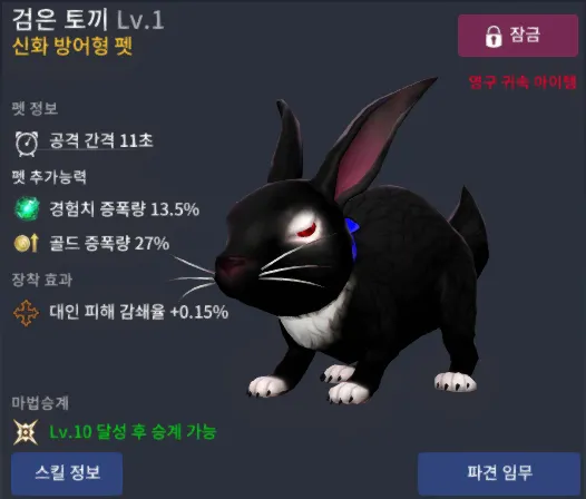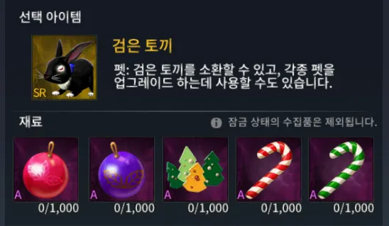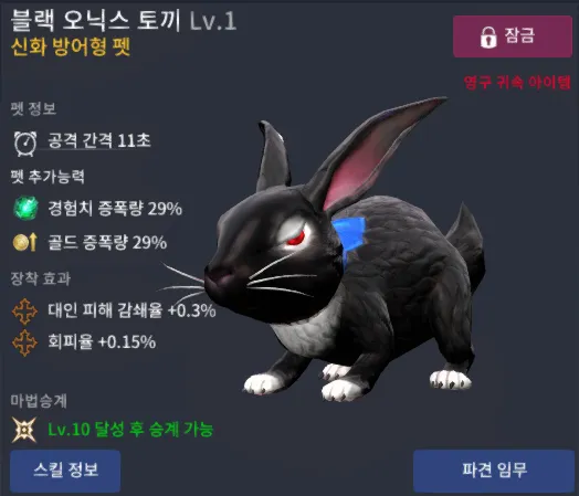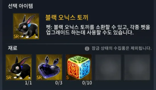 블랙 오닉스 토끼 제작 시 소모 시키고 싶지 않은 검은 토끼는 반드시 잠금을 하셔야 합니다.