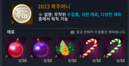 필드 몬스터 처치 후 드랍되는 5가지 이벤트 아이템을 모아서 대장간 → 제작 → 이벤트 → 아듀! 2022에서 다양한 아이템 교환 및 제작